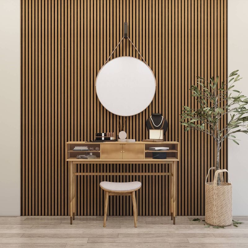 SpecRite Timber Slat Panels are perfect for transforming tired living areas into beautiful modern spaces. With an acoustic felt backing and beautiful wooden veneer battens, these panels can be used on walls and ceilings to add a modern, warm design aspect to your home or workspace.